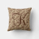 Monogram Initial Script Brown Rose Gold Leaves Throw Pillow