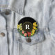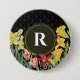 Monogram Initial Spring Flowers Damask Background Button