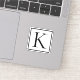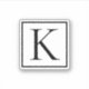 You can customize this sticker with your initial. Colored in black text with a black bordered square.