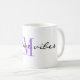 Modern script 'positive vibes' and single purple monogram initial are featured on this 11oz. classic coffee mug. Easily change text and initial to make it yours using the Template provided. Large capacity for hot or cold beverages. Available in 11oz and 15oz capacity. See "About This Product" at side for more information.