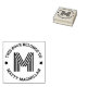 From the library of or this book belongs to rubber stamp with your monogram initial at the center and your custom text and name in a circle around it.