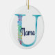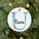 Monogram Initial U Rainbow Star design Ceramic Ornament