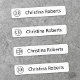 Create your own monogrammed fabric labels with this easy to use template. The labels feature two monogram initials separated by a vertical line inside a circle border and your name or other custom text.