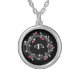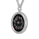 Monogram Initials Black White Pink Floral Silver Plated Necklace
