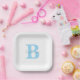 Monogram Initials Blue Custom Name Baby Shower Paper Plates