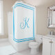 Monogram Initials Blue White Custom Script Name Shower Curtain