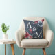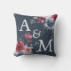 Monogram Initials Dusty Rose Blue Floral Dark Blue Throw Pillow