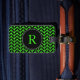 Monogram Initials Herringbone Pattern Neon Green Luggage Tag