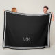 Monogram Initials Modern Minimal Frame Black White Fleece Blanket