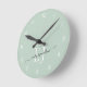 Monogram Initials Names Elegant Script Sage Green Round Clock