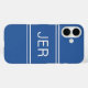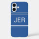 Give your iPhone 16 a timeless look with this modern Case Mate cover in royal blue. Featuring up to three bold initials in shadowed white font, the design uses subtle borders to frame the monogram for a clean, professional style. Personalize easily with your name, initials, or short text using the simple template. A chic minimalist option that works for both men and women, perfect as a stylish everyday accessory or thoughtful gift.