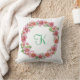 Pink and Green Floral Wreath with your Initial inside. Add your own initial and make the pillow personalized.