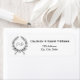 White background. Decorated with a wreath. Personalize and add your name, address. Add your first names initials. Black text.