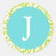Monogram J Chartreuse Pale Blue Personalizable Wed Classic Round Sticker
