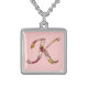Initial K in floral design for necklaces. Customize with your own background color.