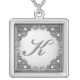 Elegant scrolled Monogrammed Necklace with an embossed look and pewter-like scroll-work.