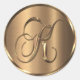Monogram K NONMETALLIC Bronze classic round sticker. Seal envelopes or wedding favor gifts with these printed faux BRONZE monograms. These are not embossed monograms or beveled monograms and they are printed with non metallic inks on a flat sheet of stickers available in two sizes. In addition to being pretty wedding stationery supplies, these elegant wedding invitation envelope seals also make great monogrammed custom Christmas card seals, personalized holiday greeting card envelope seal stickers and customized Xmas card monogram seal stickers.