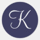 Monogram K, White on Navy Blue, Classic Round Sticker