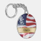 Monogram keychains with names with patriotic American flag pattern designed for men or women, boys or girls but works especially well for war veterans. A fun two side acrylic design that lets you carry your car keys or house keys in style and makes a great party favor.