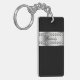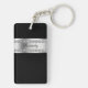 Monogram keychain with pretty printed silver look monogram emblem you can personalize with any name, initials, or message and printed pink diamond jewel bling, along with printed pink elegant black background you can customize. Use as a gift or party favor. Designed as keychains for women or keychains for girls, in a fun two side acrylic design that lets you carry your keys in style.