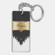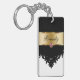 Monogram with pretty black damask pattern and gold monogram emblem that Includes a printed purple diamond jewel. Personalize with any name, initials, or message as a gift or party favor. Designed as keychains for women or keychains for girls, in a fun two side acrylic keychain. Lets you carry your keys in style.
