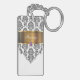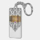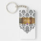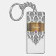 Monogram with pretty black and white damask pattern gold monogram emblem that includes a printed purple diamond jewel. Personalize with any name, initials, or message as a gift or party favor. Designed as keychains for women or keychains for girls, in a fun two side acrylic keychain. Lets you carry your keys in style.