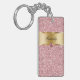 Monogram keychain with pretty printed gold monogram emblem you can personalize with any name, initials, or message and printed pink diamond jewel bling, along with printed pink glitter background you can use as a gift or party favor. Designed as keychains for women or keychains for girls, in a fun two side acrylic design that lets you carry your keys in style.