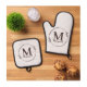 Personalized Monogram Kitchen Oven Mitt & Pot Holder Set, Custom Name Cooking Gift ideas for grandma, nina, grandmother, wreath of leaves,