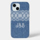 Darling in Denim! Protect your iPhone 15 forever in Blue Jeans! Transform your iPhone into a Blue Jean Jacket and flaunt your Denim Style! Add a touch of Blue Jean Lace Style to your Phone with this Customizable iPhone Case! Classic Blue Jean Denim and White Lace iPhone Case featuring a Beautiful Lace Design. Retro Vintage 1970's Style Blue Jean Bell Bottom Jeans phone case is elegant, sleek, stylish, and a subtle High Fashion touch that makes a Great Accessory addition to your Look. Blue Jean Phone Cases make the Perfect Gift for any occasion or event! Personalize this Blue Jean Lace iPhone Case to your Hearts content. Just Add Your Own Initials! The Blue Jean and Lace is Faux and Simulated.