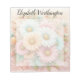 Cute and whimsical floral design pink white orange and blue daisies flowers on a girly coquette background made of pink and white delicate lace.