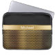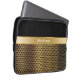 Men's monogram laptop sleeve with simulated gold metal grill pattern printed on the cover, monogram space you can personalize with your name or initials, and background color you can change to your liking. Designed for men or boys.