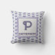 Monogram Last Name Initial Blue Gray Polka Dot Throw Pillow