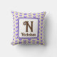 This monogram pillow is a great way to add a colorful accent in your home or create a special keepsake for a wedding or housewarming. A blue polka dot pattern appears against a beige background on both the front and back of this pillow. The letter "N" is featured in a square along with the family name. The letter and your name can quickly and easily be personalized.