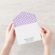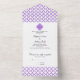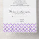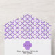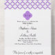 Monogrammed lavender quatrefoil all in one wedding invitation. Lavender quatrefoil pattern on white background.