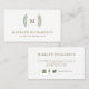 These elegant, simple business cards feature green watercolor leaves with your monogram in the center, in dark gold colored text. The back of the card includes several social media icons; you can simply delete any of them that are not needed.