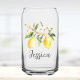 Drink with style with our Monogram Lemon Fruits White Flowers Tree Branch Can Glass. Featuring watercolor illustration of citrus lemon tree branch, suitable as gift for nature lovers.