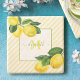 Relax with your favorite beverage and protect your furniture with this beautiful, chic, simple, modern, custom monogram name stone coaster. Fresh, rustic, country watercolor lemons and green leaves, along with grass green handwritten script typography, overlay yellow pinstripes on a white background. Personalize with your name and monogram initial. Makes a stylish statement every time you use it. A great gift for a friend, as well as yourself!