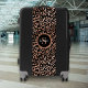 A trendy and chic rose gold foil leopard print decorates this this black luggage. Personalize it with you monogram name. Designed for you by Blackberry Boulevard.
