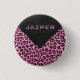 Monogram Leopard Black and Hot Pink Print Pinback Button