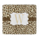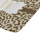 Chic, modern, pretty wild animal big cats leopard print glass cutting board in brown, tan, and peach featuring a brown stripe and white edged with brown banner you can customize with your monogram initial!