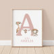 Monogram Letter A Boho Safari Animal Nursery Wall Poster