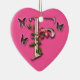 Monogram letter F with rose and butterflies on a heart shaped ornament.