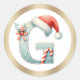 This design features a watercolor illustration of letter G with Santa hat and candy cane.