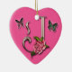 Monogram letter J with rose and butterflies on a heart shape ornament.