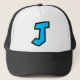Simple block monogram capital letter J in blue and black. Customize and choose your own background colour. Image available on various gifts and products.