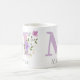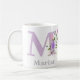 Delightful pastel coloured floral design with monogram and name of the recipient. Initial is the letter M.