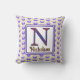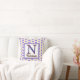 This monogram pillow is a great way to add a colorful accent in your home or create a special keepsake for a wedding or housewarming. A blue polka dot pattern appears against a beige background on both the front and back of this pillow. The letter "N" is designed in a small tile pattern.