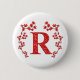 Monogram Letter R Red Leaves Pinback Button