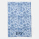 Monogram Light Blue and Navy Floral Pattern Kitchen Towel