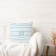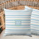 Monogram Light Blue and White Stripes Beach House Throw Pillow